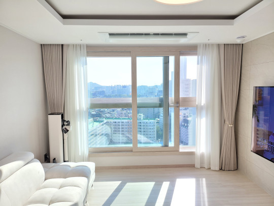 부천힐스테이트 34평 광폭 거실 커튼시공 (오트밀)