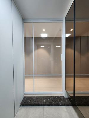 아치형 원슬라이딩 (화이트) (샤틴유리)